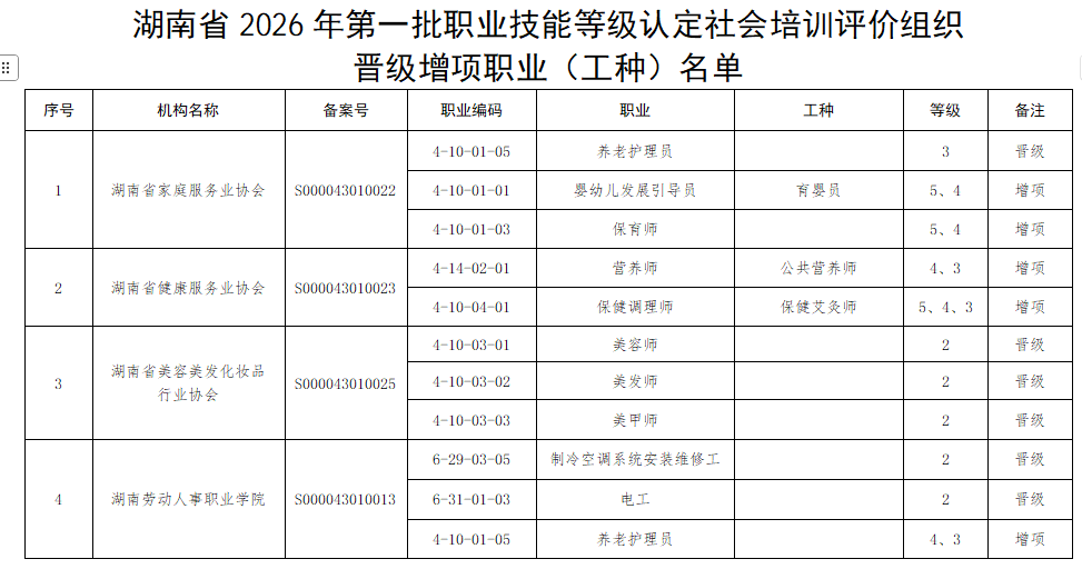 学院职业技能等级认定社会培训评价组织 增项三大职业(工种)